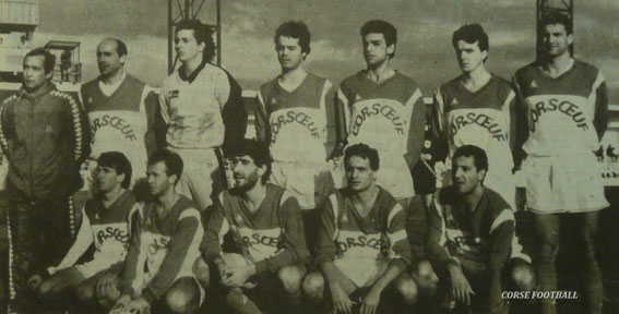 Debout de gauche à droite J André ottaviani , Stephane Rocca serra ( gardien ), Stephane castelli , Edmond ibayi , Paul Terrazzoni , Gérard Fontana , pierre Fontana . Accroupis pierre Bartoli , Bruno césari, Rachid boudaouine , Tony Cervetti , Christian gameiro , pascal Lucchini