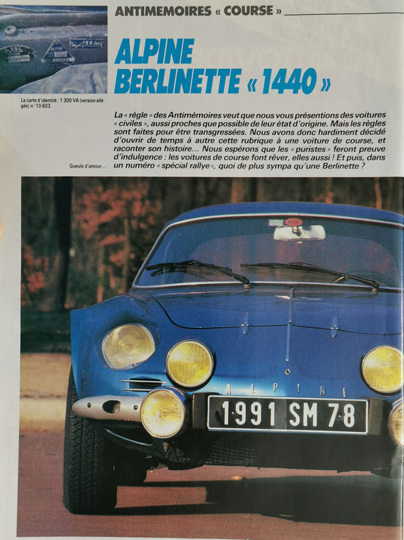 - ALPINE Berlinette 1440 (Echappement Février 87)