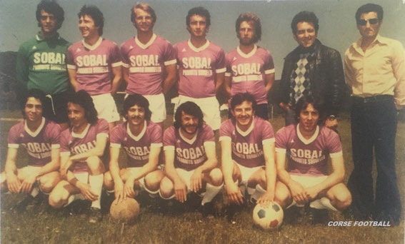 Debout : Charles Degli Esposti , Pascal Tedeschi , Jacjy Fieschi, Jean Marie Ferrarini, Pasquini , Charles Vincensini , Hubert Oppeccini , Serge Latorre , Patrick Mariani et Jeannot Vincenti . Accroupis : Jean Pierre Colombani , Jacques Pianelli, Jojo Giannoni , Pascal Mariani , René Vendasi , Zézé Zucconi et Christian Graziani .
