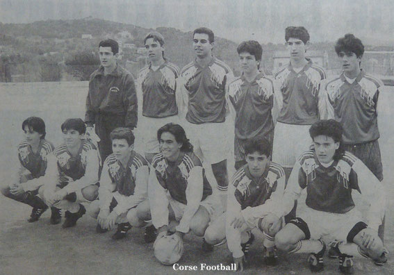 Marco Jaumon- François Bouveyron- Tony Ciosi- Philippe Jourda- Jean Quilici- Antoine Cacciari. Accroupi G à D Gilles Bellini- Stéphane Negroni- Gilbert Ferrandi- José Cacciari- Henri